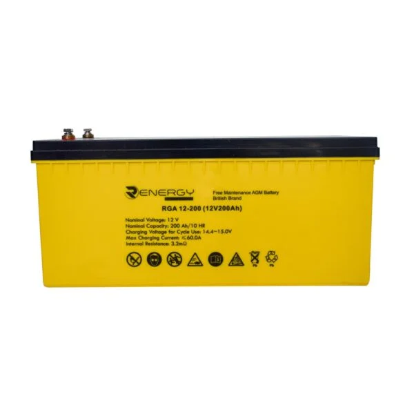 The 200Ah 12V Renergy Deep Cycle Maintenance-Free Battery offers robust and reliable energy storage, perfect for powering larger-scale solar installations and backup systems.