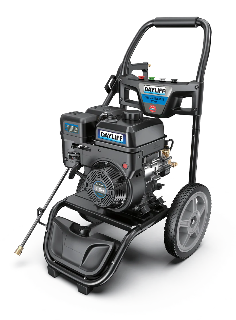 Whether you’re cleaning cars, trucks, driveways, patios, farm equipment, or industrial surfaces, the DAYLIFF DPWP9A 175BAR 6.5HP Petrol Pressure Washer delivers powerful cleaning performance, easy portability, and reliable petrol‑driven operation — making it an excellent choice for homeowners, professionals, and commercial users alike.